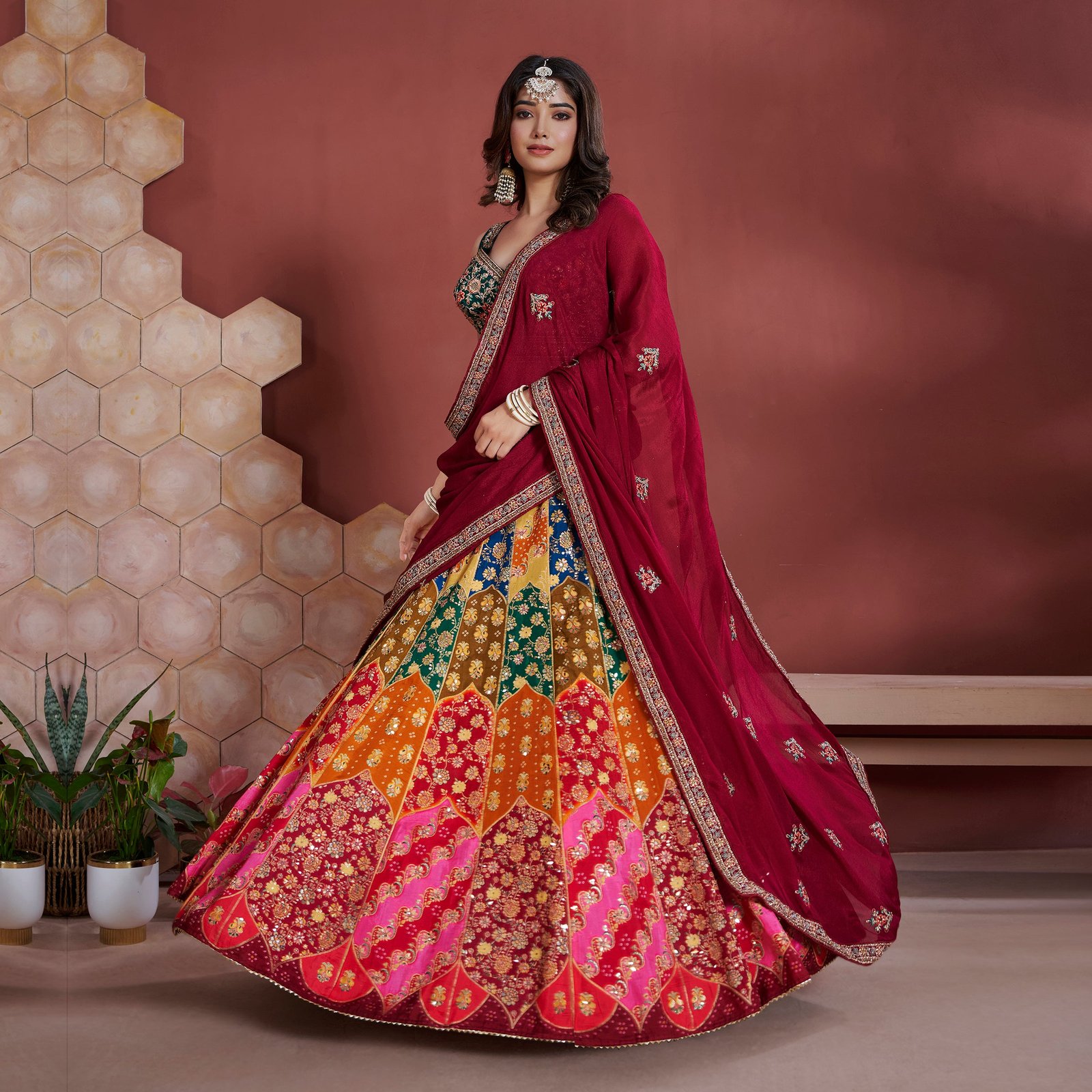 Fit for brides family and friends alike, this muti functional lehenga set is a perfect addition to any partygoers wardrobe