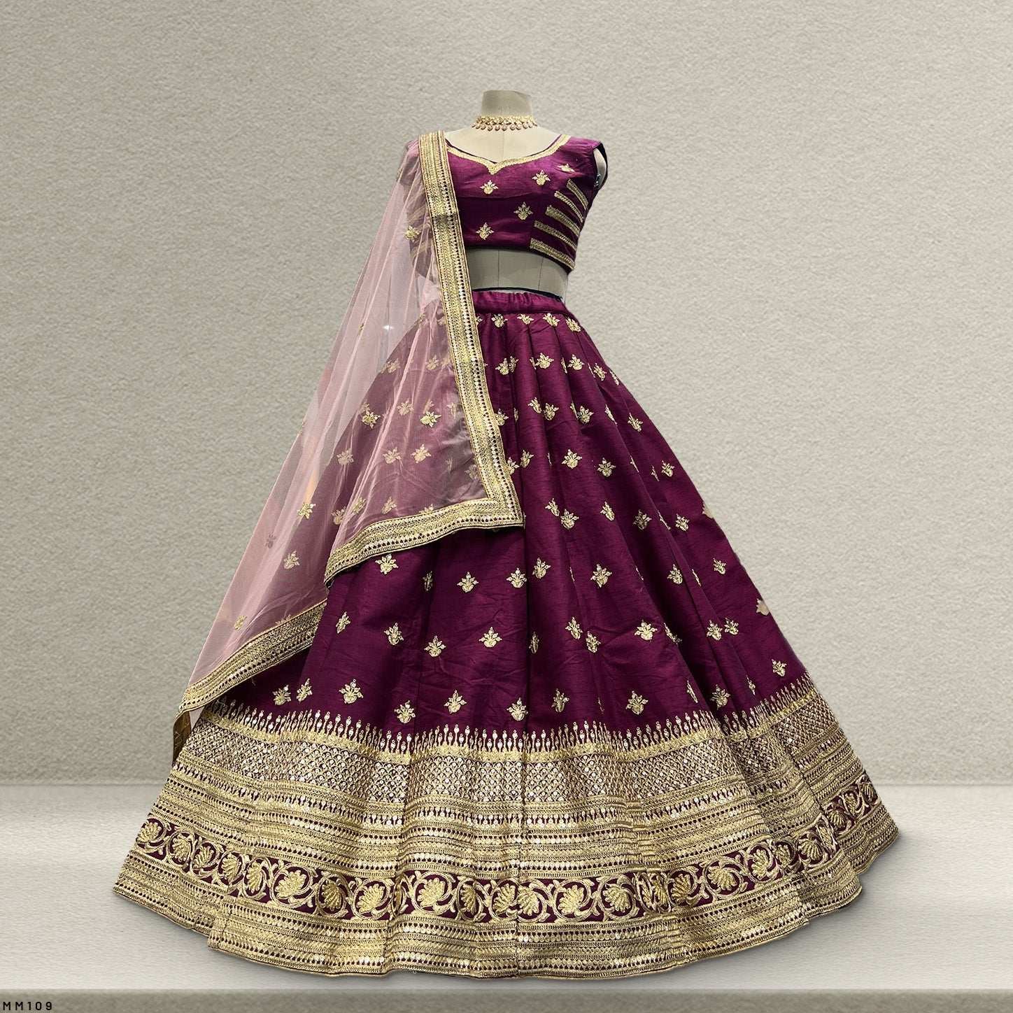 Lehenga: Raw Silk With Silk Lining and Double Can Can
