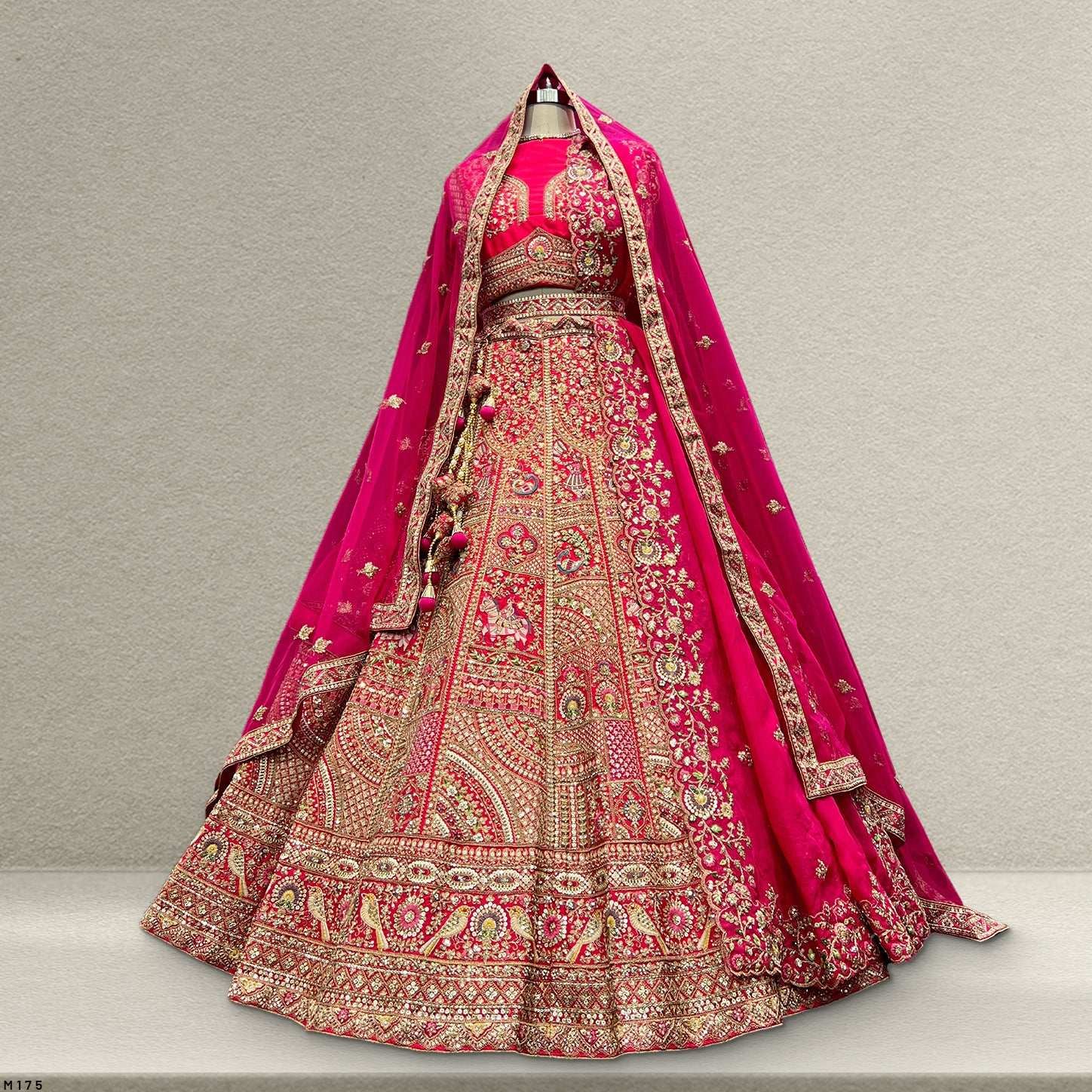 Don’t miss out on this stunning piece from our Sangria range. Shop now and be the center of attention on your big day!Note: The Lehenga & Blouse are shipped semi stitched and the color may vary a little due to photographic differences