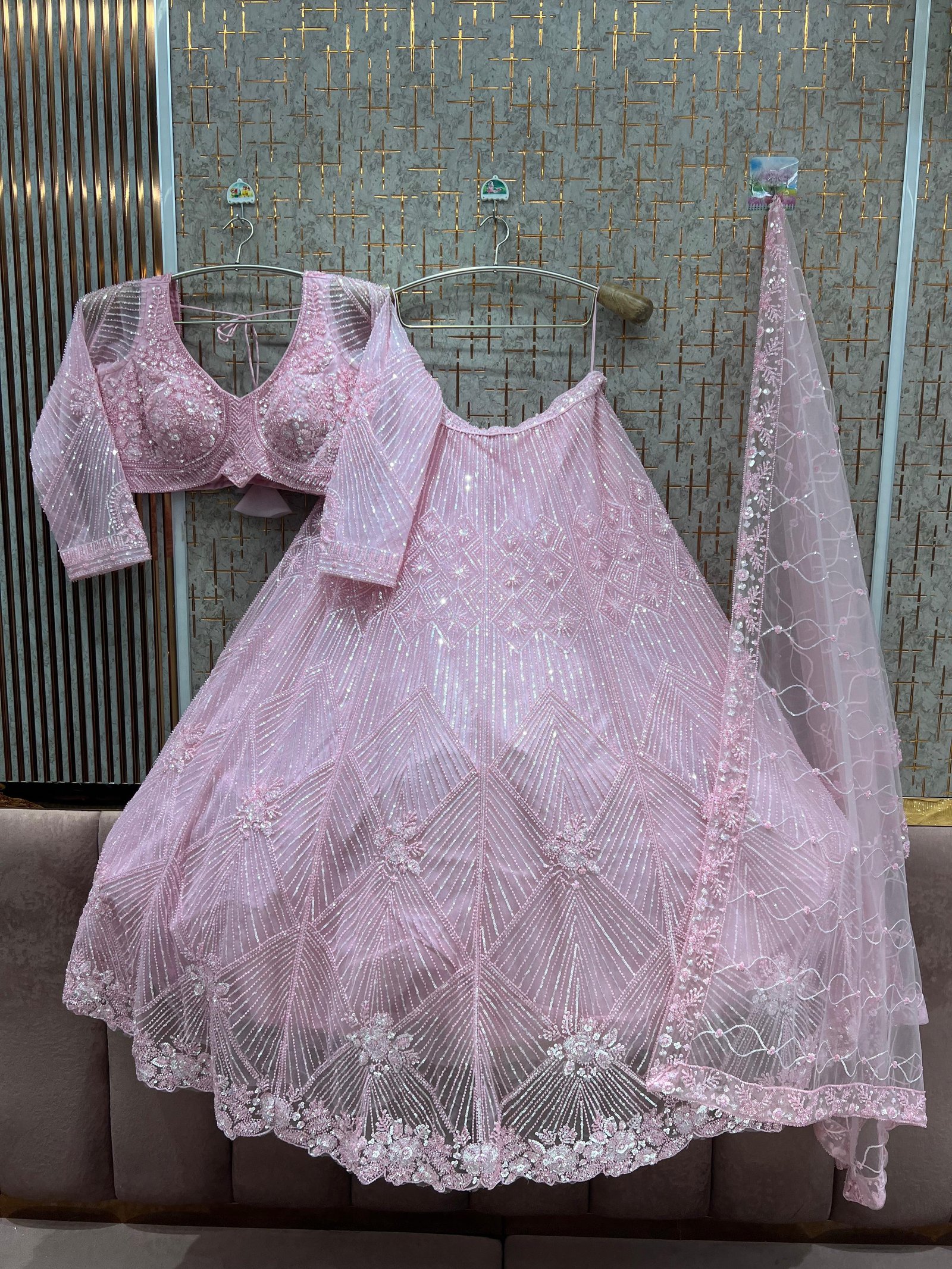 Classic party lehenga with a trendy modern touch.